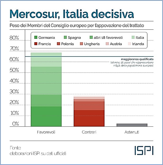 2) l’Accordo di Partenariato UE-Mercosur (EMPA), che ha una portata molto più ampia. Copre il dialogo politico, la cooperazione, gli investimenti e le disposizioni ambientali, oltre al commercio. La piena attuazione richiede la ratifica da parte di tutti i 27 Stati membri dell’UE, secondo le procedure nazionali, un processo che può richiedere anni. Una volta entrata in vigore, l’EMPA sostituirà l’iTA.