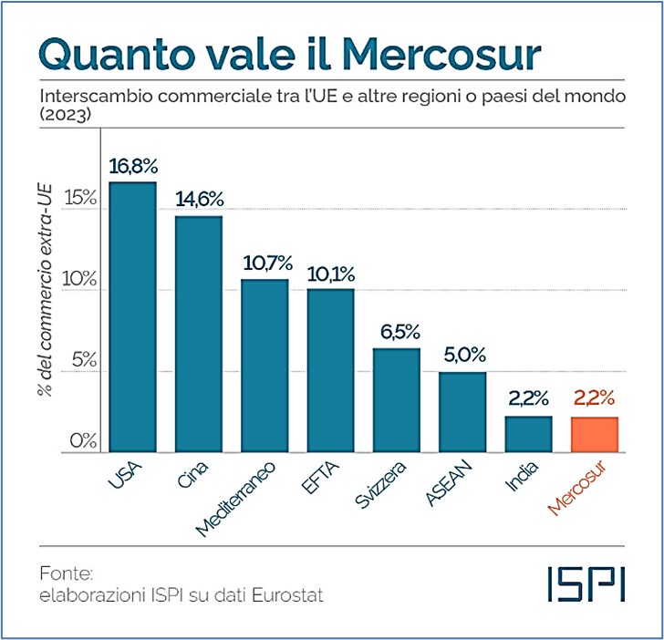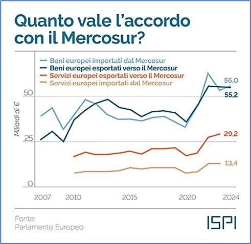 Dopo 25 anni di negoziati, l’UE e il Mercosur hanno finalmente siglato l’accordo, che dovrebbe creare una delle più grandi zone di libero scambio al mondo, coprirà oltre 700 milioni di persone e rappresenterà il 20% del PIL globale.