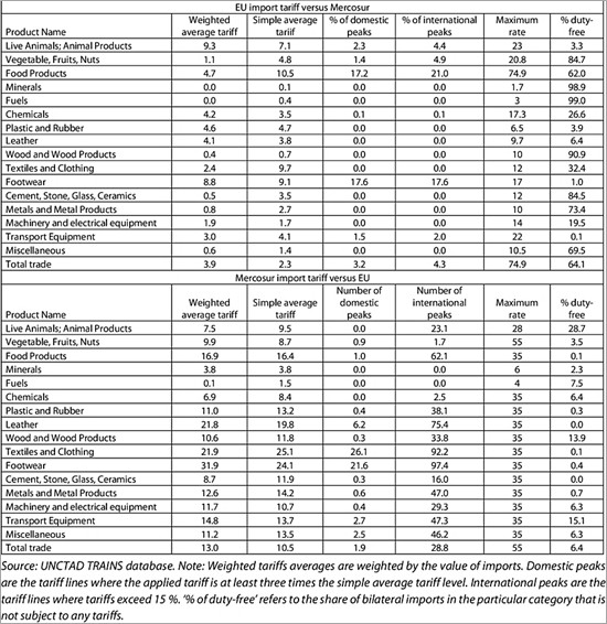 Ad esempio, un importatore sudamericano di macchinari prodotti in Europa al momento paga un dazio del 35% alla dogana sudamericana; mentre in Europa per l’importazione di prodotti alimentari si paga il 74.9%. Facendo riferimento a questi numeri, segue l’analisi in senso lato.