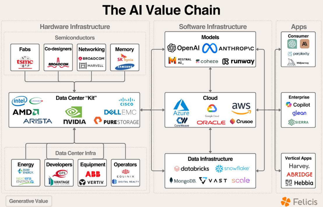 Nel grafico vediamo parte del fiorente ecosistema AI americano.