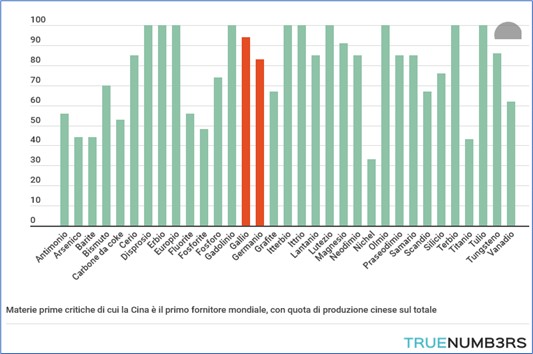 Anche su questi temi l’Europa è drasticamente in ritardo: la Cina produce il 94% del gallio e l’83% del germanio, oltre a controllare l’88% della raffinazione.