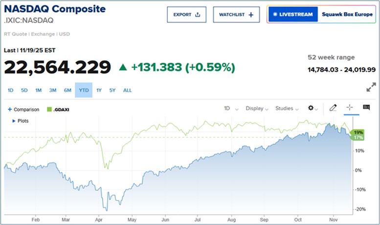 Il 19 novembre dopo l’uscita dei risultati strabilianti di Nvidia c’è stata una forte ripresa di fiducia dopo alcune settimane di incertezza, dato che l’utile e i ricavi sono stati ampiamente maggiori delle attese più rosee: le cassandre della “bolla AI” ora tacciono.