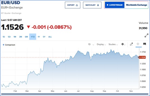 Il dollaro è passato dai massimi di inizio anno, vicini alla parità con l’euro, a un cambio attorno al 1,15. L’euro cioè si è rivalutato sul dollaro del 15% circa, ovvero il dollaro si è svalutato del 13% circa rispetto all’euro. La motivazione principale è stato il timore di squilibri commerciali e deficit in aumento, dovuti alle tariffe lanciate dagli Stati Uniti ai principali partner commerciali tradizionali; si è capito che le tariffe sono un’alternativa alla svalutazione della valuta.