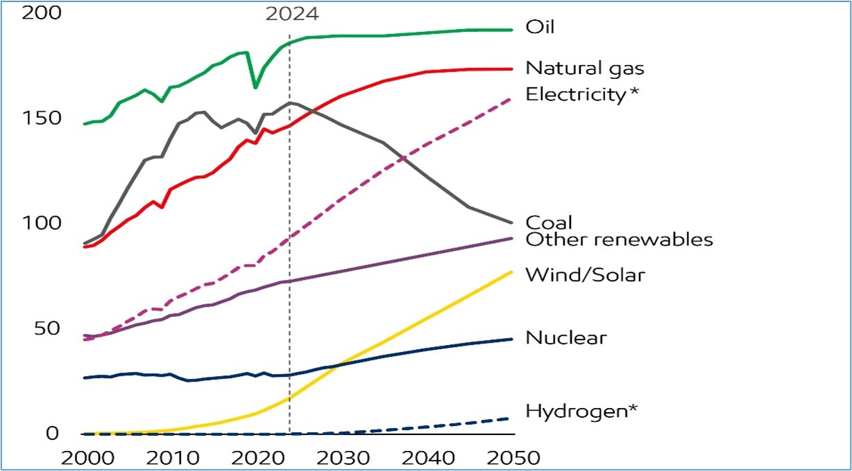 Come a dire che gli idrocarburi ovvero la maggiore fonte di energia primaria continuerà ad essere dominante almeno per altri 40/50 anni.